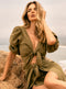 The Capri Lace-Up Tunic is locally made in Los Angeles from premium deadstock fabric for minimal waste management. The Capri Tunic gives us major Brigitte Bardot vibes in the south of France with its mini length, long bell sleeves and A-line shape! Custom details include full inner French seams and lace-up tassel detailing at the center front. Special feature of this fabric includes stunning geometric motifs gently embroidered throughout.